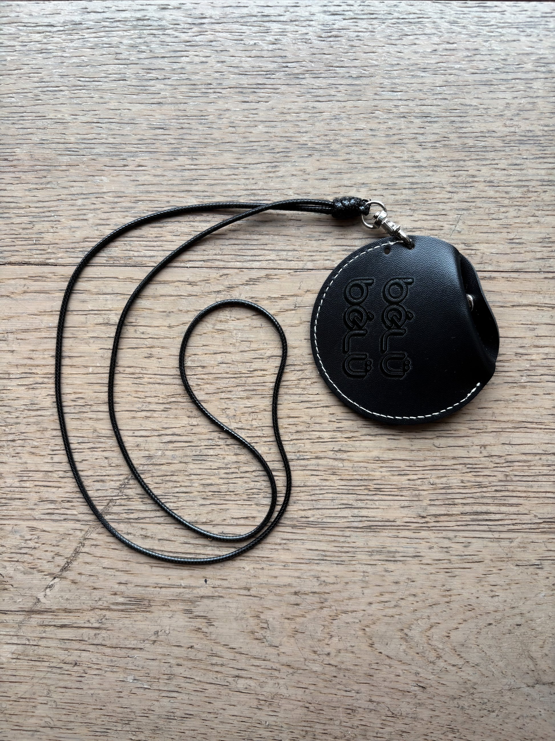 A sleek, round leather coin pouch designed for life on the move. Crafted with smooth black vegan leather and finished with clean contrast stitching, this pendant keeps your coins secure and accessible while adding a refined BéLü BéLü touch to any outfit